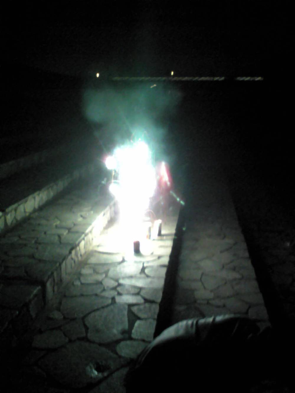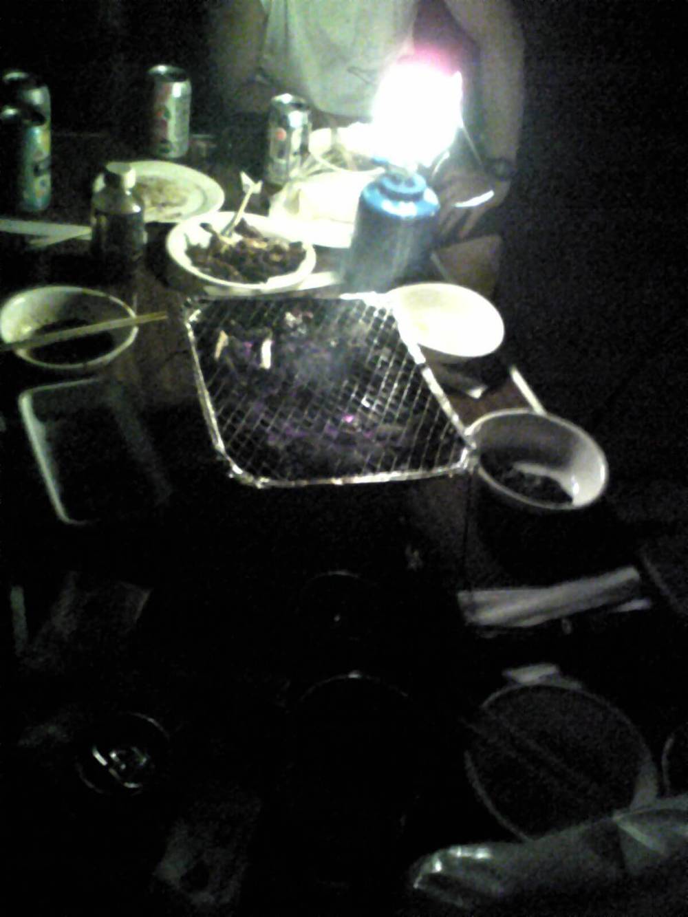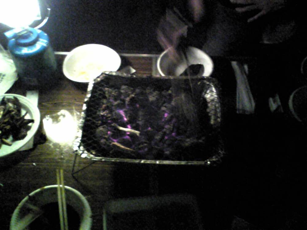 お約束のバーベキューである.またの名を炭化物作成実験.