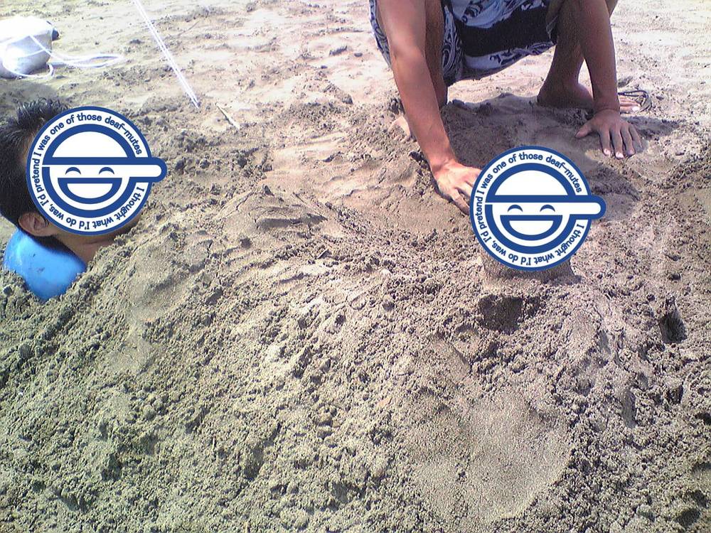 砂浜では定番の砂で埋めるやつ.顔とは違う場所に笑い男のマークがあるが,それは察してほしい.