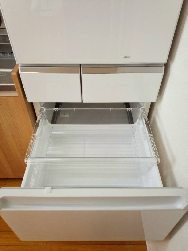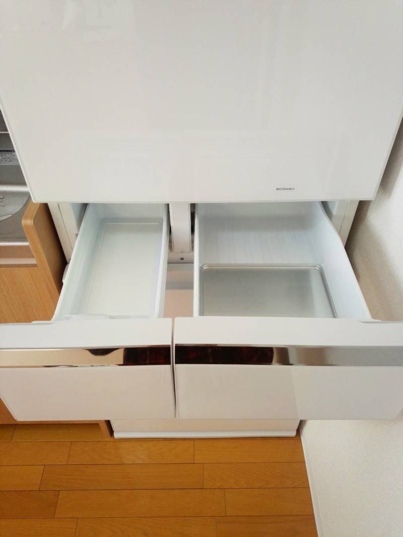フルフラットなガラスドアなのが売りの機種なのだが,私としては普通のスチールでも良かった.しかしながら,値段がほとんど変わらなかったので見た目が良いガラスドアを購入.購入してから,ガラスドアの冷蔵庫は最近でてきた製品なので数年後の不具合が心配であること,引越し等の移動時にガラスが心配であることに気がついたが後の祭である.