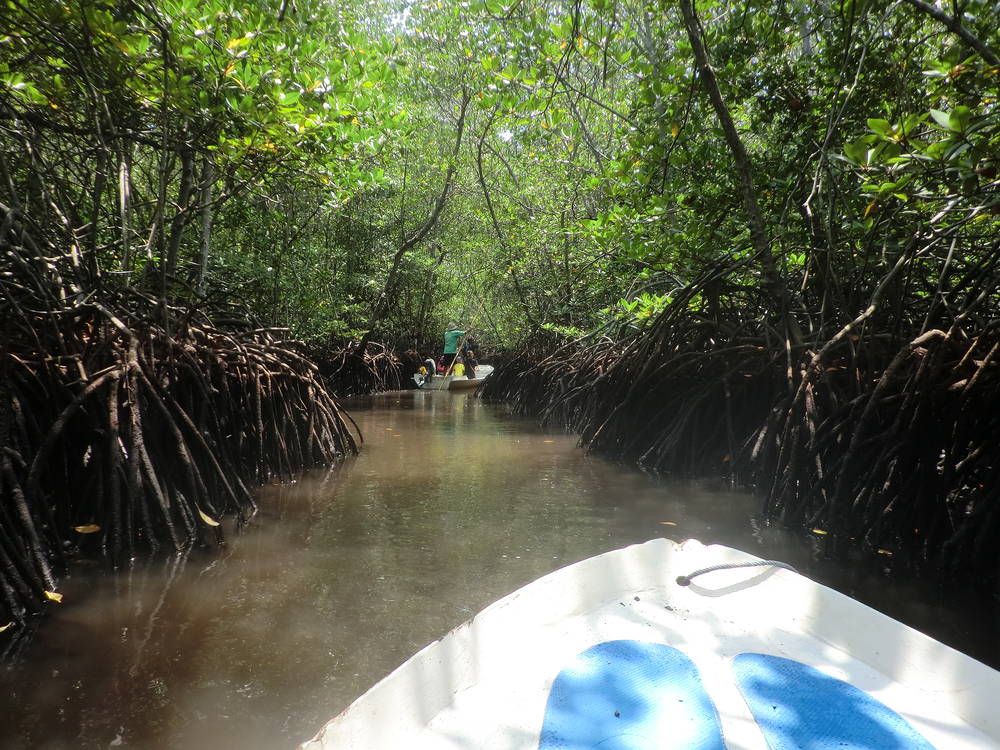 まずはマングローブ探索をした.そもそも,マングローブという植物は存在しないらしい.肉食動物という動物が存在しないように.海水でも育つ植物の総称がマングローブなのだとか,現地のガイドさん曰く.